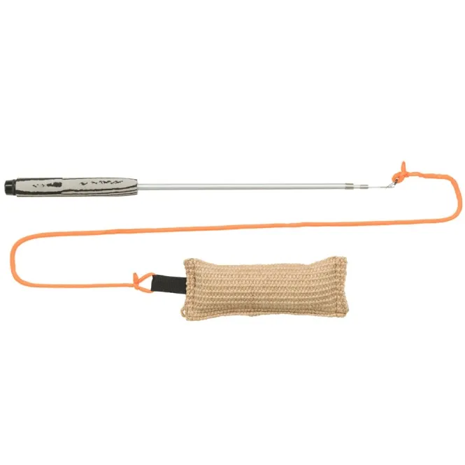 - leichte Teleskopangel (Fiberglas) mit Jute-Dummy (genäht)