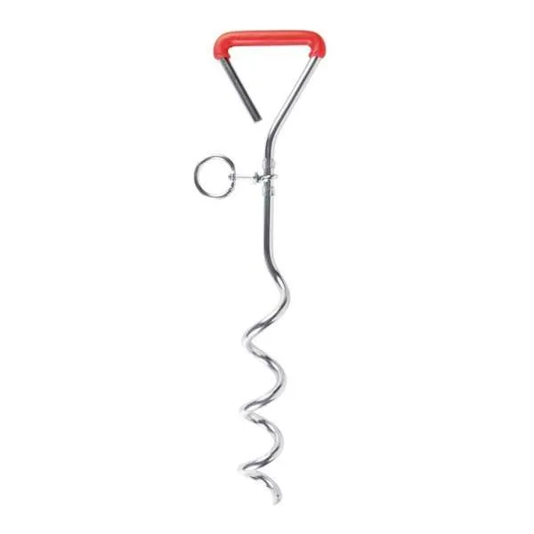 Dieser verzinkte Anlegepflock eignet sich dazu, einen Hund kurzfristig mit einer Leine daran zu befestigen, z.B. bei der Ausbildung oder um diesen am Verlassen des Grundstückes zu hindern.