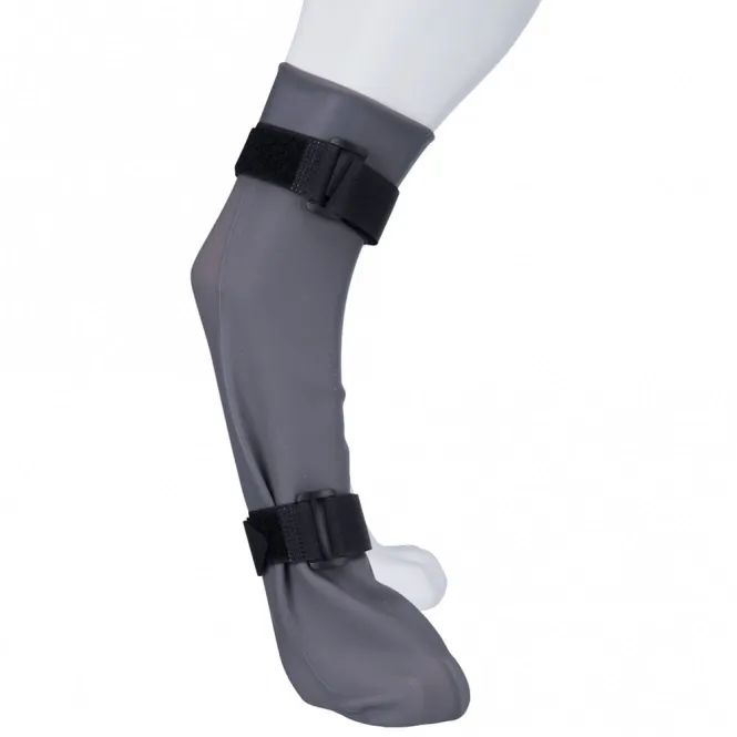 - Größenbestimmung: Messen Sie am stehenden Hund die breiteste Stelle der Pfote (Verbände berücksichtigen). Die Schutzsocke sollte ca. 1 cm breiter sein.