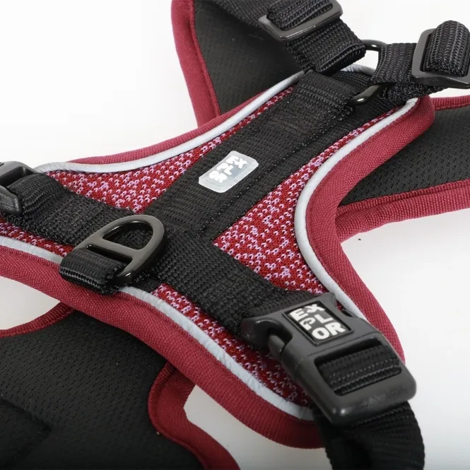 Mit dem EXPLOR Ultimate Fit No-Pull-Geschirr, einem gut durchdachten, ergonomischen Hundegeschirr, das ideal für einen täglichen Stadtspaziergang oder auch ein großes Outdoor-Abenteuer ist, sind Sie unterwegs immer auf Tuchfühlung. Ihr Hund genießt optimale Bewegungsfreiheit, weil der durch Ziehen an der Leine verursachte Druck gleichmäßig über die Brust verteilt wird. So werden lebenswichtige Organe im Nacken geschützt. Das Geschirr verfügt über zwei Befestigungsringe aus Edelstahl: einem auf dem Rücken, der für ruhige oder ältere Hunde geeignet ist, die leicht zu kontrollieren sind und einem verstärkten D-Ring im Brustbereich, um Hunde, die an der Leine ziehen, zu kontrollieren. Das EXPLOR Ultimate Fit No-Pull-Geschirr ist um den Nacken und die Brust herum verstellbar, wodurch es, in Kombinatin mit den stapazierfähigen Materialien, für fast alle Hunde geeignet ist. Die Schnallen sind um die Mitte herum angebracht, so dass der Hund kein(e) Bein(e) anheben muss, wenn das Geschirr angelegt wird. Um das Fell und die Haut des Hundes vor Wundscheuern zu schützen, sind die meisten der Riemen und Schnallen mit weichen, atmungsaktiven Materialien überzogen. Außerdem trocknen die leichten, aber hochwertigen Stoffe, die sowohl für die Innenseite als auch für die Außenseite verwendet werden, schnell, was sehr praktisch ist, wenn Ihr Hund gerne schwimmen geht. Um zu verhindern, dass sich Ihr Hund beim freien Laufen an Ästen verfängt, hat das Geschirr keine Schlaufen oder abstehenden Teile. Das EXPLOR Ultimate Fit berücksichtigt auch die Sicherheit Ihres Hundes im Straßenverkehr. Die reflektierenden Paspeln sind an den richtigen Stellen angebracht und sorgen für optimale Sichtbarkeit im Straßenverkehr. Außerdem gibt es im Brustbereich des Geschirrs eine spezielle Innentasche für einen ID-Anhänger, so dass der Anhänger leicht zugänglich und unbeschädigt bleibt. Rausgehen und ERKUNDEN!