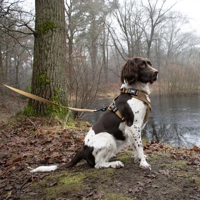 Mit dem EXPLOR Ultimate Fit No-Pull-Geschirr, einem gut durchdachten, ergonomischen Hundegeschirr, das ideal für einen täglichen Stadtspaziergang oder auch ein großes Outdoor-Abenteuer ist, sind Sie unterwegs immer auf Tuchfühlung. Ihr Hund genießt optimale Bewegungsfreiheit, weil der durch Ziehen an der Leine verursachte Druck gleichmäßig über die Brust verteilt wird. So werden lebenswichtige Organe im Nacken geschützt. Das Geschirr verfügt über zwei Befestigungsringe aus Edelstahl: einem auf dem Rücken, der für ruhige oder ältere Hunde geeignet ist, die leicht zu kontrollieren sind und einem verstärkten D-Ring im Brustbereich, um Hunde, die an der Leine ziehen, zu kontrollieren. Das EXPLOR Ultimate Fit No-Pull-Geschirr ist um den Nacken und die Brust herum verstellbar, wodurch es, in Kombinatin mit den stapazierfähigen Materialien, für fast alle Hunde geeignet ist. Die Schnallen sind um die Mitte herum angebracht, so dass der Hund kein(e) Bein(e) anheben muss, wenn das Geschirr angelegt wird. Um das Fell und die Haut des Hundes vor Wundscheuern zu schützen, sind die meisten der Riemen und Schnallen mit weichen, atmungsaktiven Materialien überzogen. Außerdem trocknen die leichten, aber hochwertigen Stoffe, die sowohl für die Innenseite als auch für die Außenseite verwendet werden, schnell, was sehr praktisch ist, wenn Ihr Hund gerne schwimmen geht. Um zu verhindern, dass sich Ihr Hund beim freien Laufen an Ästen verfängt, hat das Geschirr keine Schlaufen oder abstehenden Teile. Das EXPLOR Ultimate Fit berücksichtigt auch die Sicherheit Ihres Hundes im Straßenverkehr. Die reflektierenden Paspeln sind an den richtigen Stellen angebracht und sorgen für optimale Sichtbarkeit im Straßenverkehr. Außerdem gibt es im Brustbereich des Geschirrs eine spezielle Innentasche für einen ID-Anhänger, so dass der Anhänger leicht zugänglich und unbeschädigt bleibt. Rausgehen und ERKUNDEN!