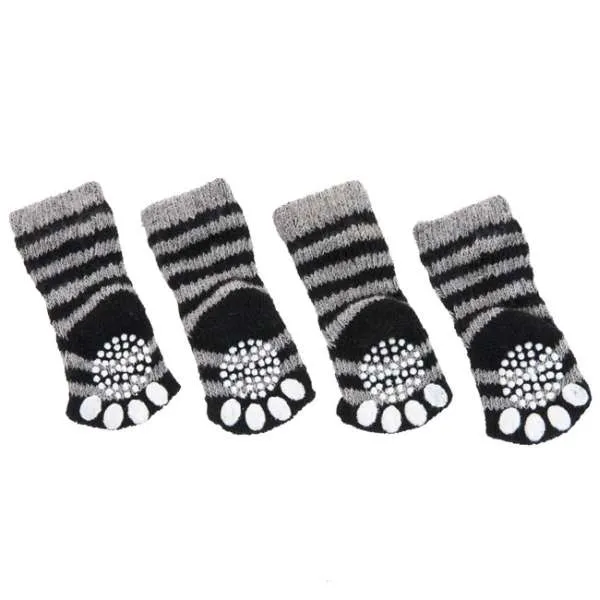 Die Doggy Socks haben eine Anti-Slip Sohle und geben Ihrem Hund einen sicheren Halt auch bei glatten Untergründen wie Fliesen, Parkett, Laminat. Sie eignen sich auch ideal als Pfotenschutz. Erhältlich in zwei verschiedenen Designs. Handwäsche.