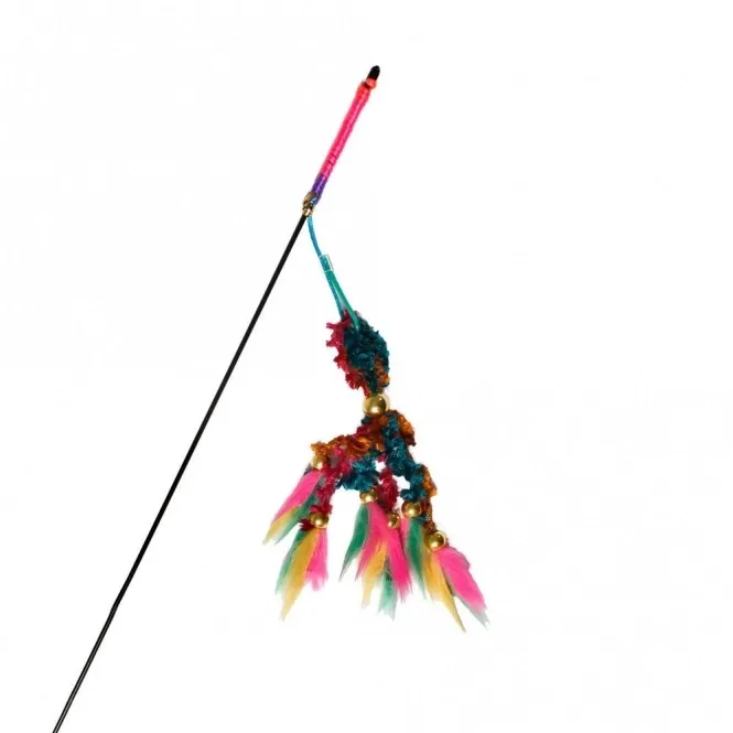 Mit der Katzenangel mit Samtrute kann der Spielspaß richtig losgehen. Die flauschige Rute mit klappenden Kugeln an den Enden wird im Nu den Jagdinstinkt Ihrer Samtpfote wecken und Ihre Katze wird die Interaktion mit Ihnen genießen!