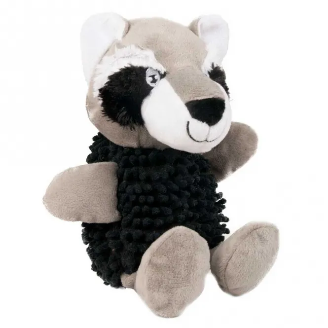 Der Shaggy Waschbär ist ein weiches Hundespielzeug mit Squeaker.