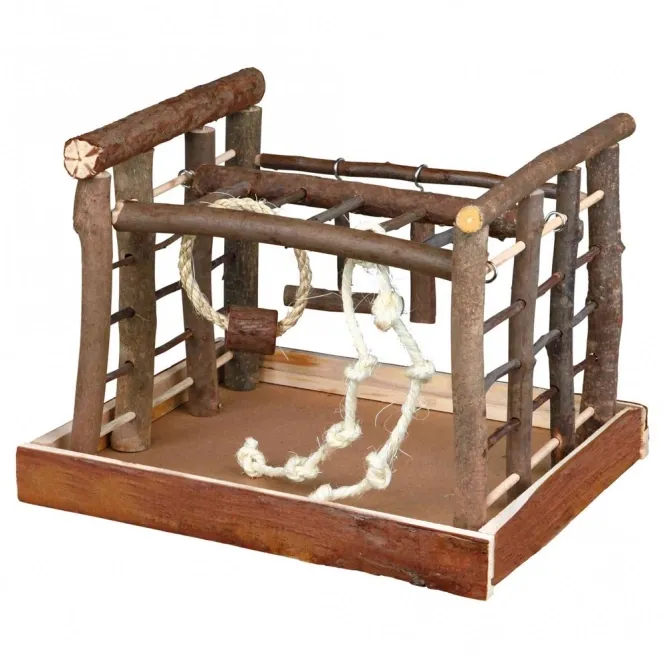 Der Vogelspielplatz aus Naturholz bietet jede Menge Beschäftigungsmöglichkeiten für kleine Vogelarten, wie Kanarien und Wellensittiche. Einfache Montage.